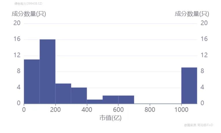 其次,指数大中小盘股均有分布,市值风格相对均衡。截至 2025 年 12 月 17日,绿色电力指数中市值分布在1000 亿以上的成分股共9 只,600亿 -700亿以上的成分股共2 只,500亿 -600亿以上的成分股共2 只,200亿元- 500 亿元之间的成分股有 37 只。