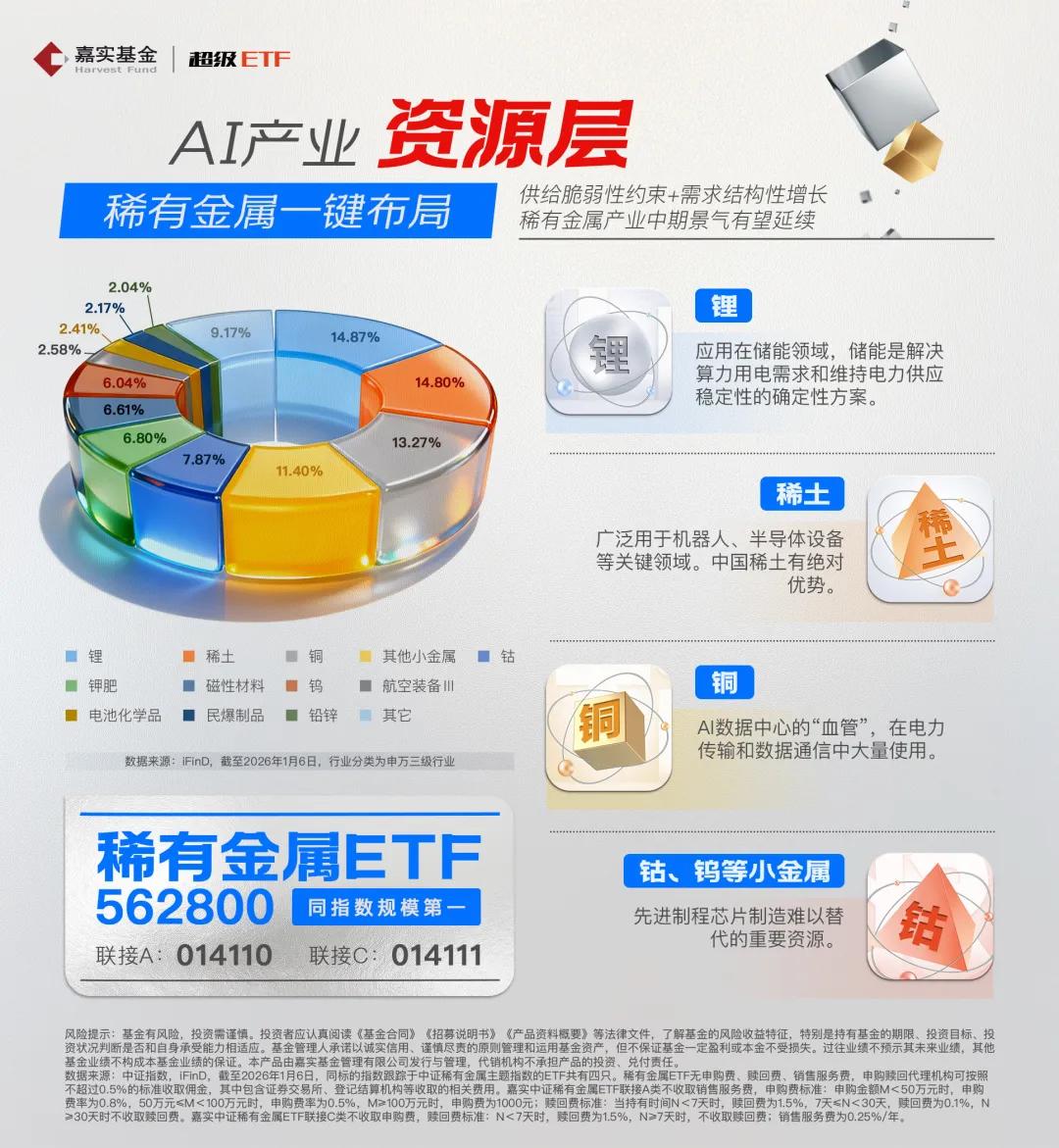跟踪CS稀金属指数的基金中,嘉实基金旗下的稀有金属ETF(562800)在当前4只ETF产品中规模居首,交投活跃、流动性优。根据基金2025四季报,日均跟踪偏离绝对值为0.02%,年化跟踪误差为0.39%,体现运营化精细。